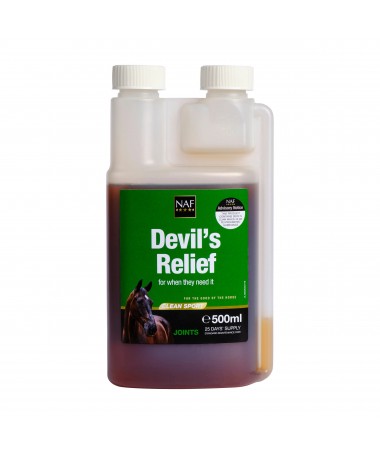 Devil’s Relief+ est une combinaison d’extraits d’herbes et de teintures cumulées à la Griffe du Diable (HARPAGOPHYTUM), herbe native d’Afrique. Devil’s Relief+ offre confort aux articulations raides et aux zones touchées par les bosses, coups, douleurs, ecchymoses... Devil’s Relief+ peut être utilisé sur tous les chevaux et poneys, à l'exception des juments gestantes.