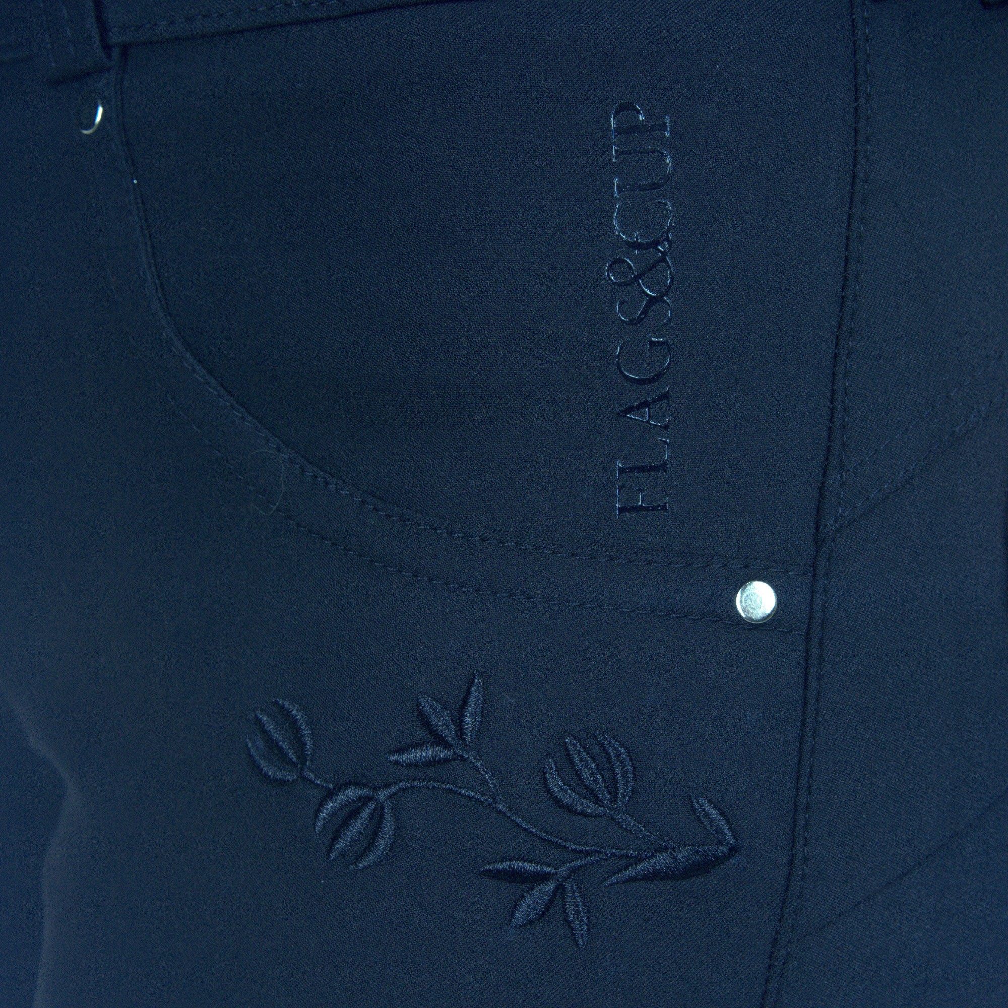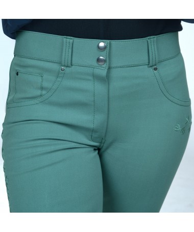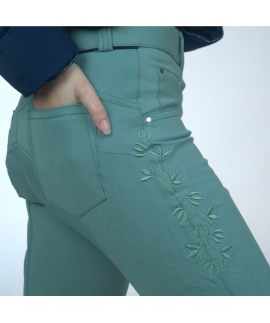 La coupe de ce pantalon sublime votre silhouette et son tissu extensible 4 sens procure un incroyable confort. Les fleurs brodées ton sur ton apportent la touche d’élégance qui vous fera craquer !