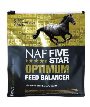 NAF Five Star Optimum will help restore and maintain five star condition and health, maximise the nutritional value of the daily feed ration, and optimise the health and efficiency of the digestive system. Concentrated and easy to feed, Optimum comes in a highly palatable pellet form. It is of the highest supplement specification and has a great sugar free flavour. Optimum is formulated to complement either a high fibre low concentrate, or performance diet. When a daily feed is not necessary, the great news is that Optimum can be simply given on it’s own, directly from your hand. It is designed to optimise every horse's diet from family pony to performance athlete.