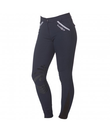 The Cayenne breeches : very modern with its two-coloured stripes ! Its cotton/nylon fabric is very resistant but still very comfortable, light and breathable : a real «second skin» ! Contour fit, self full seat. 2 front pockets. 2 false back pockets. Silicone knee pads for higher grip and comfort ! Lycra ankle, anatomically shaped, for even more comfort ! Composed of 62% cotton, 28% nylon and 10% spandex.