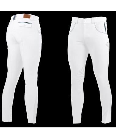 GIMO Flags&Cup breeches for boys will give an exceptional comfort and a very modern looking ! Its cotton/nylon fabric is very resistant but still very comfortable, light and breathable : a real «second skin» ! Contour fit, self-full seat. Two front pockets and two false back pockets. Silicone knee pads for higher grip and comfort ! Lycra ankle, anatomically shaped, for even more comfort ! Composed of 62% cotton, 28% nylon and 10% spandex.