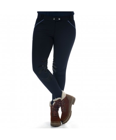 Ladies breeches ORILLIA Flags&Cup will bring you elegance and comfort every day. Light and breathable, cotton/nylon fabric - very resistant - gives a real «second skin» sensation ! Contour fit, self-full seat. 2 front pockets, with velvet bindings. 2 false back pockets with flap, velvet bindings. Double velvet rear loops. Breeches belt with logo embroidered at back. Embroidery on right tigh. Silicone knee pads for higher grip and comfort ! Lycra ankle, anatomically shaped, for even more comfort ! Composed of 62% cotton, 28% nylon and 10% spandex.