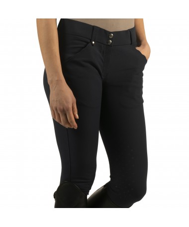 You will enjoy wearing these Flags&Cup trendy breeches ! Incredibly comfortable, its fabric is stretch, flexible, durable, breathing for a higher comfort whatever the time or intensity of your efforts. Contour fit, self-full seat. Two front pockets and two false back pockets, scalloped. Silicone knee pads for higher grip. Lycra ankle, anatomically shaped, for more comfort. Composed of 92% nylon, 8% elastane.