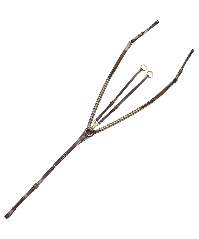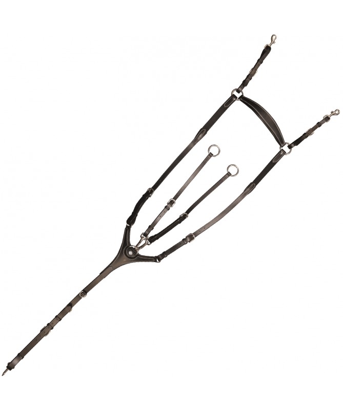 5 points attachments, to maintain your saddle in good position, and offering premium comfort of your horse, thanks to natural sheep skin protective pads. Elastic and padded 5 points breastplate with bridge and martingale attachment. Stainless steel buckles.