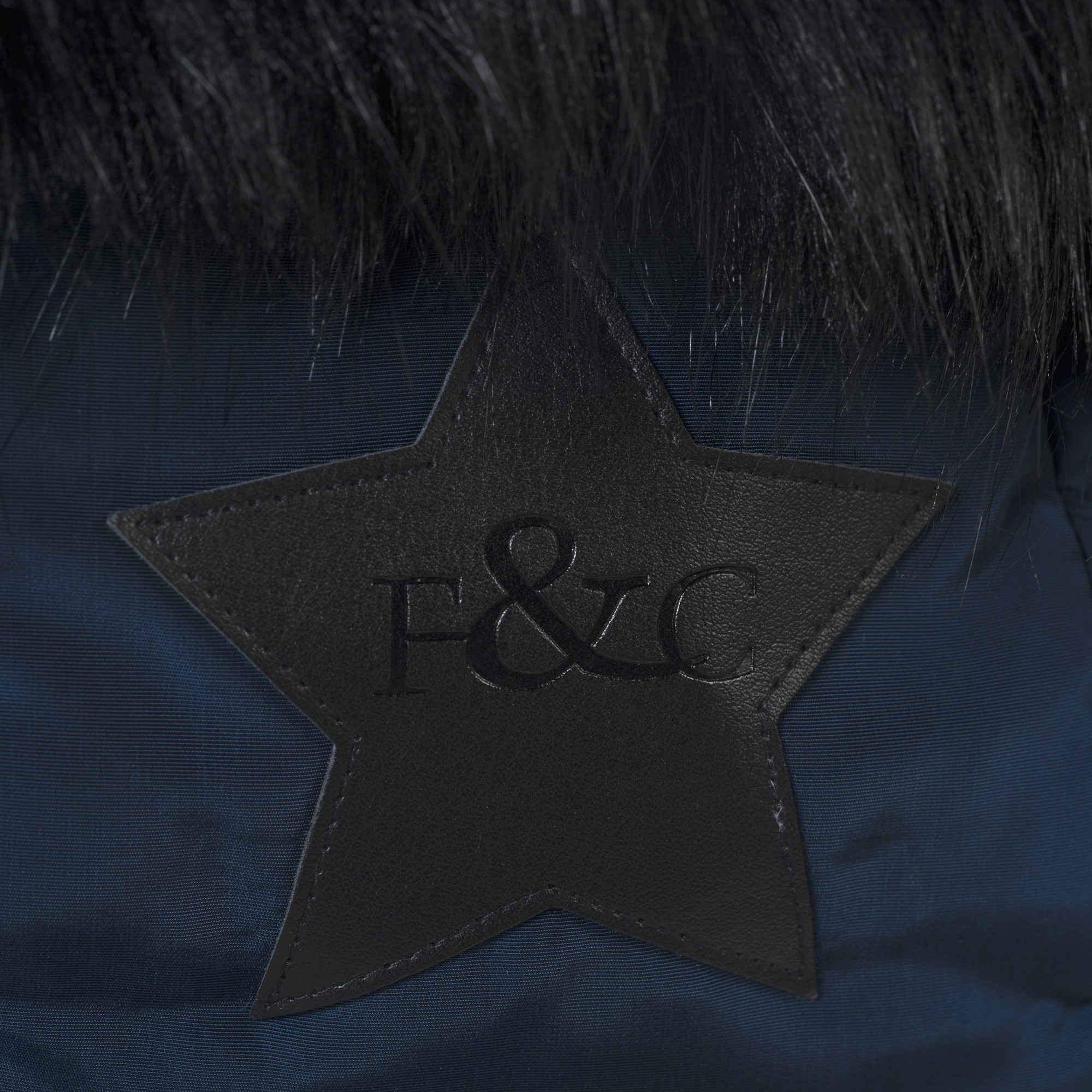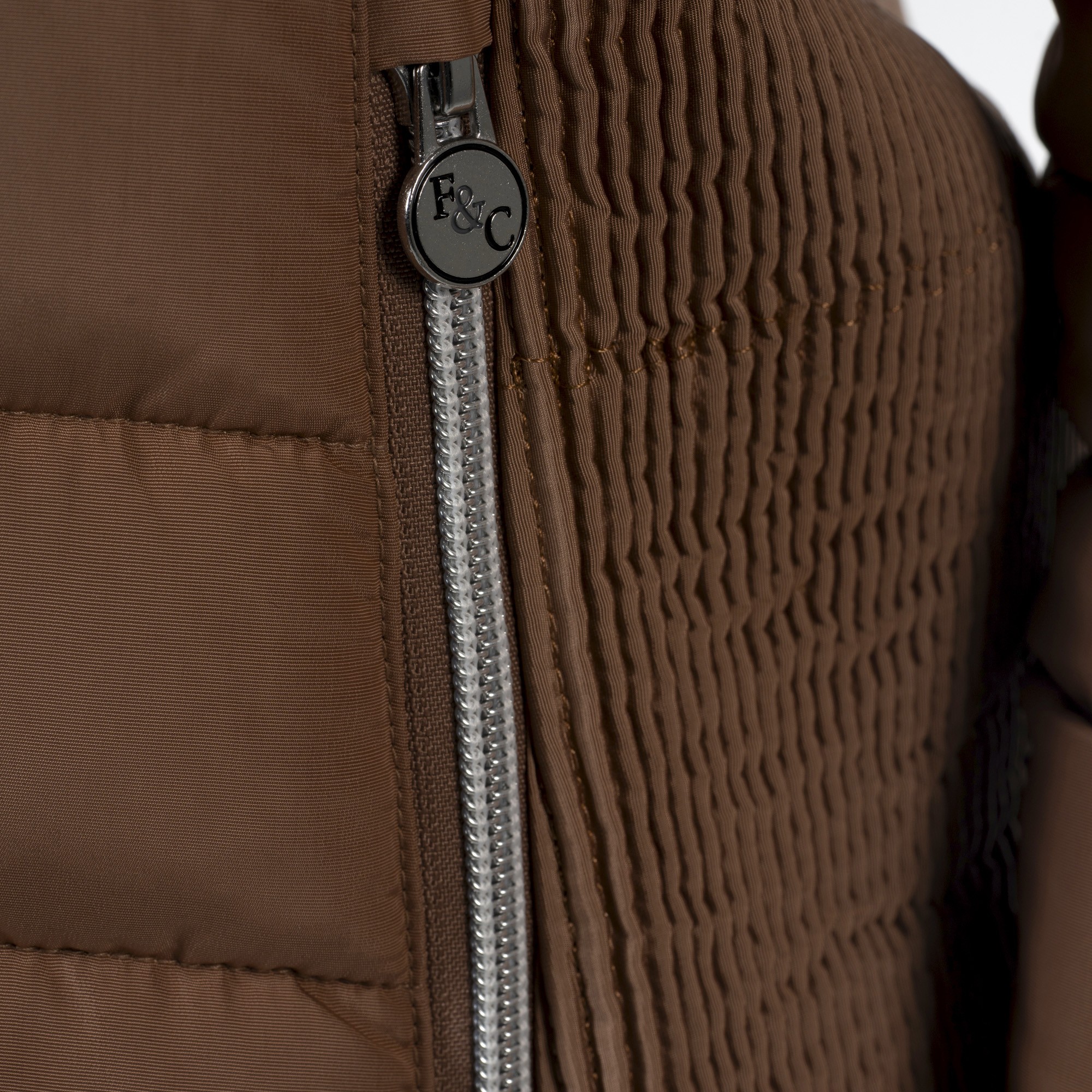 Two-way front zipped closing, two front zipped pockets and metallic F&C pullers.
