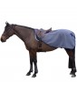 Polyester polar fleece exercise sheet, outer fabric with square design. Braided tail strap and matching bindings. Saddle cut fastening with velcro attachment.