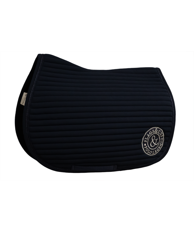 With its velvet outer shell, houndstooth, this lovely saddle pad is a must-have which will bring an elegant touch under all jumping saddles. Its exclusive 400g filling MXC offers much appreciated benefits: good breathability, and efficiency in absorbing shocks. Inner waffle fabric 100% acrylic (at the contact of horse back) is really soft and analergic. Flags&Cup metal badge on left side and woven label on withers.