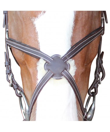 Flat and padded brow-band and noseband. Removable flash attachment. Anatomic head-piece. Nickled Lyre buckles. Delivered with rubber grip reins.