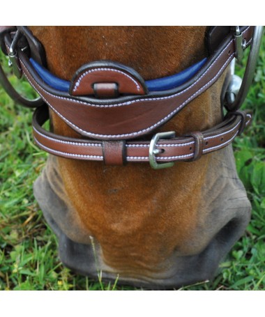 Anatomic headpiece, padded, with blue leather yoke embossed F&C.